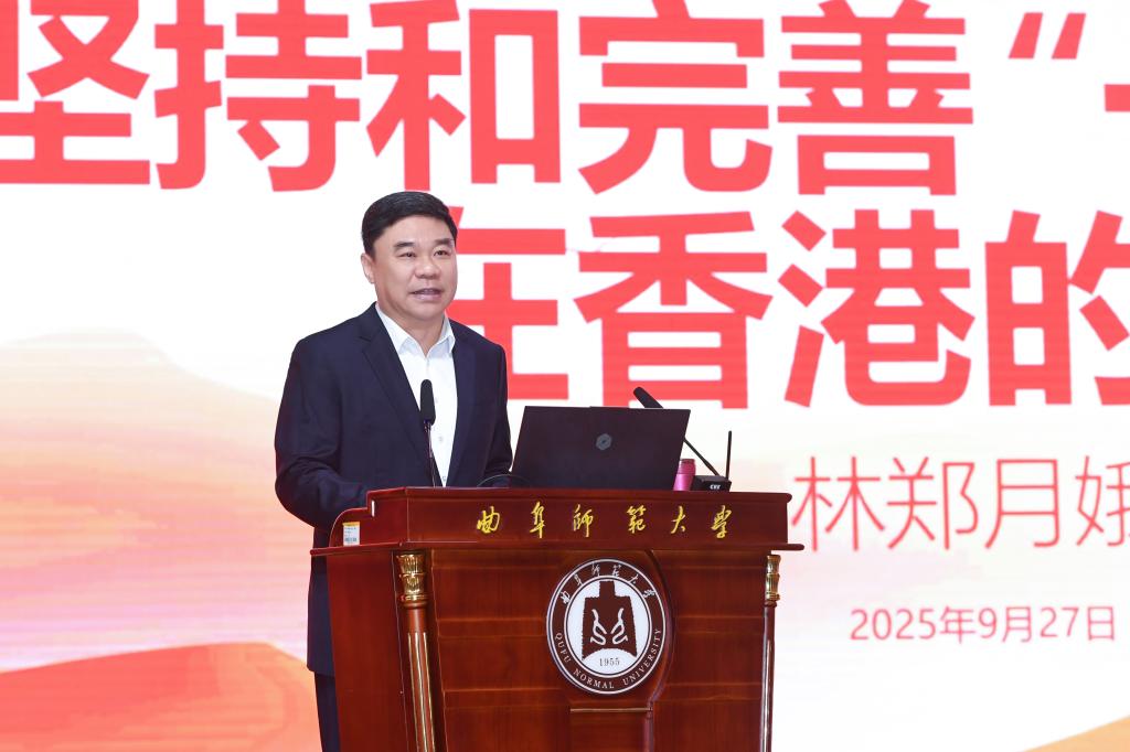 “继续推进‘一国两制’实践行稳致远”“校长和老师是推进优质教育的主力军”……9月27日,香港特别行政区第五任行政长官林郑月娥到访曲阜师范大学,作为“杏坛大讲堂”主讲嘉宾,为师生作题为《坚持和完善“一国两制”在香港的实践》主旨演讲。曲阜师大党委书记邢光主持演讲。